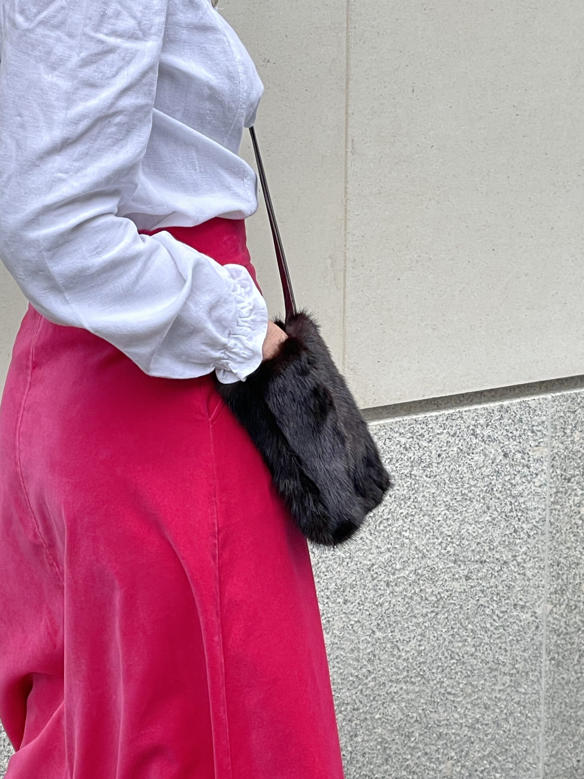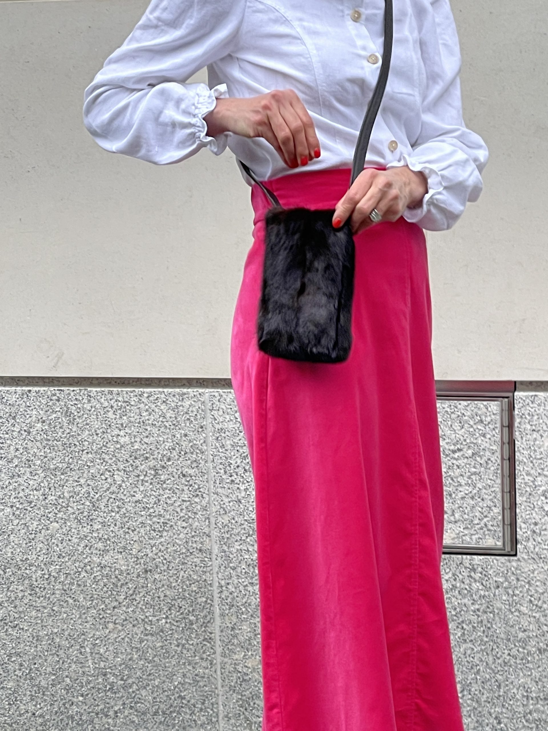 The bestselling Bella bag is made from upcycled reconditioned vintage mink is an ideal bag to hold your phone and keys.
